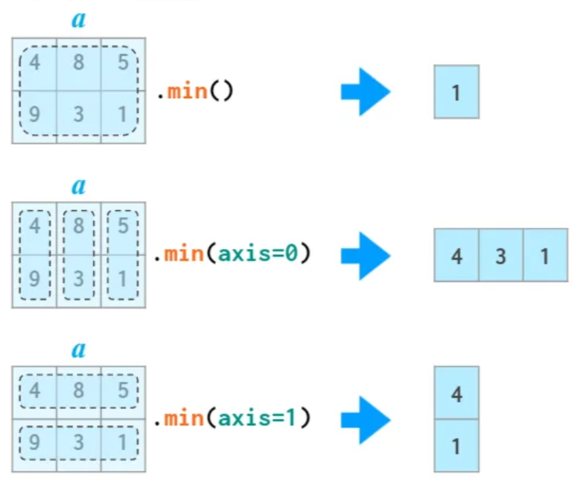 이때 mean() 메서드에 축 인자인 axis=0을 지정하면 열별 계산 결과가 1차원 어레이로 반환된다.