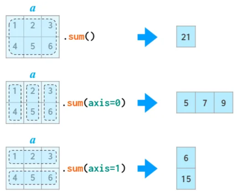 두 개의 축을 가지며, 행은 0번 축, 열은 1번 축이라 부르기도 한다.