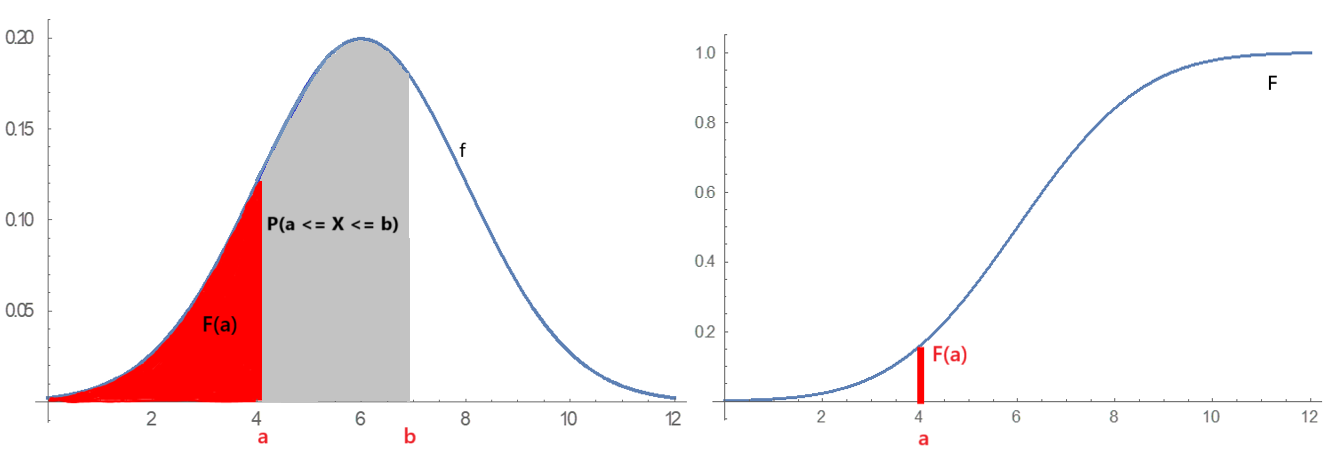 누적분포함수가 알려진 경우, 연속확률변수 가 구간 에 속할 확률은 다음과 같이 계산된다.
