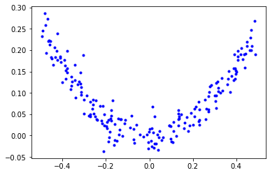 예를 들어, 잡음이 포함된 2차 함수 형태의 데이터셋을 이용하여 결정트리 회귀 모델을 훈련시켜 보자.