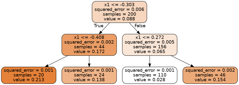 samples: 해당 노드에 속하는 훈련 샘플 수value: 해당 노드에 속하는 훈련 샘플의 평균 타깃값squared_error: 해당 노드에 속하는 훈련 샘플의 평균제곱오차(MSE)