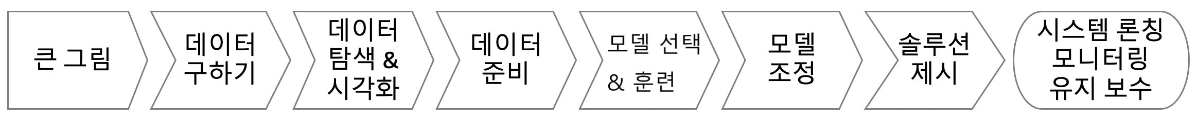 머신러닝으로 문제를 해결하려면 먼저 관련된 데이터를 구하고 기초적인 정보를 확인한 후에 어떤 모델을 어떻게 훈련시킬 것인가를 판단한다.