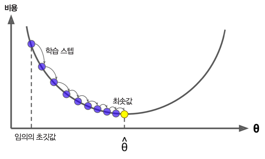파라미터 벡터 를 0 또는 임의의 값으로 초기화한 후에 훈련을 시작한다.